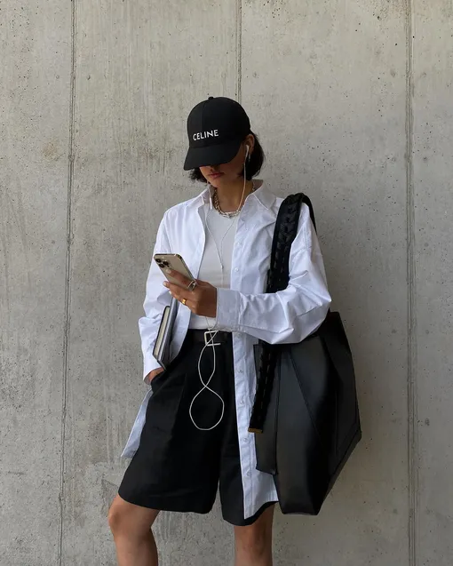 И все-таки рубашку со счетов списывать не стоит, ведь именно в паре с ней бермуды образуют самое универсальное летнее комбо. Ее можно заправить в шорты или носить на выпуск, застегнуть на все пуговицы или оставить расстегнутой, надев в низ топ, - вариантов масса. В любом случае аутфит выйдет очень удобным, но в то же время отлично подходящим для города.