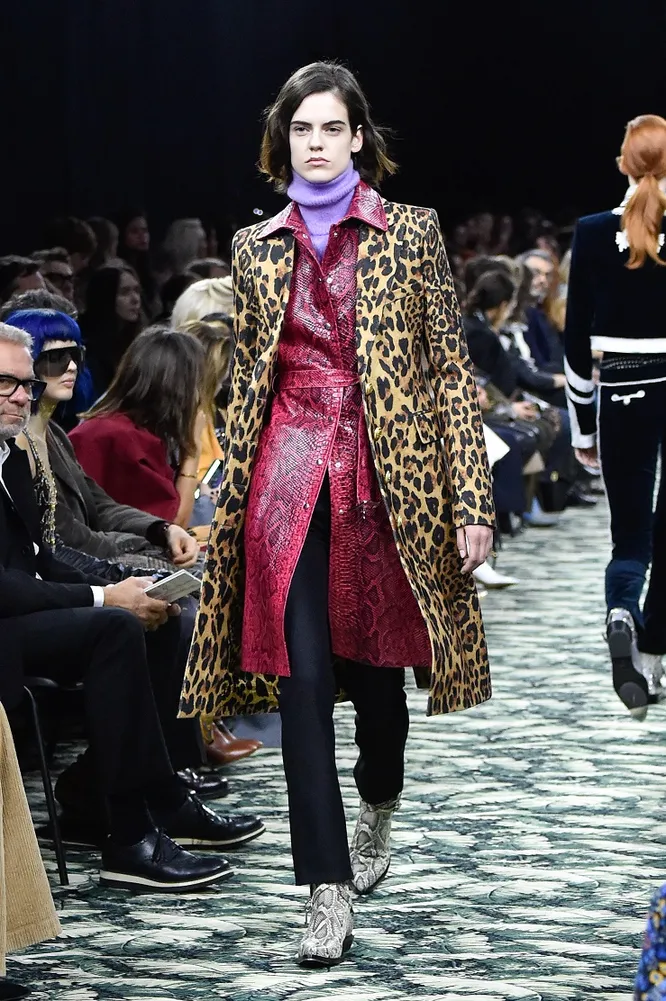 Привет из 80-х: объемный мохнатый свитер под кожу крокодила с кардиганом оверсайз тигровой расцветки. Добавьте юбку с окрасом пантеры, если решитесь. Впрочем, как показывает пример Max Mara, ничего слишком провокационного в таком образе нет: сбалансируйте с помощью простой водолазки и нейтрального макияжа.