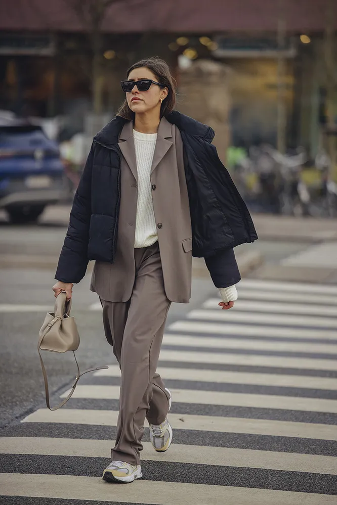 Первое, что стоит держать в голове: кроссовки кроссовкам рознь. И чтобы ваша пара лучше вписывалась в разные образы, лучше выбирать кроссовки простой расцветки и минималистичного дизайна. К счастью, именно такие в тренде в этом сезоне. Глобально есть три способа составить гармоничный лук с пиджаком и кроссовками: классика с вкраплениями спорта, спорт с вкраплениями классики и абсолютный баланс. Первые два способа гораздо проще. Например, вы можете просто надеть брючный костюм и заменить лоферы на пару кроссовок. Наряд получится вполне уместным даже для офиса (если у вас нет строгого дресс-кода), а чувствовать вы себя будете гораздо комфортнее, чем в узких кожаных туфлях. Есть и совершенно противоположный вариант. Допустим, вы надеваете худи с капюшоном, тренд сезона «неспортивные» треники, пару кроссовок, а поверх — классический плечистый жакет мужского кроя. Просто, удобно и очень стильно.