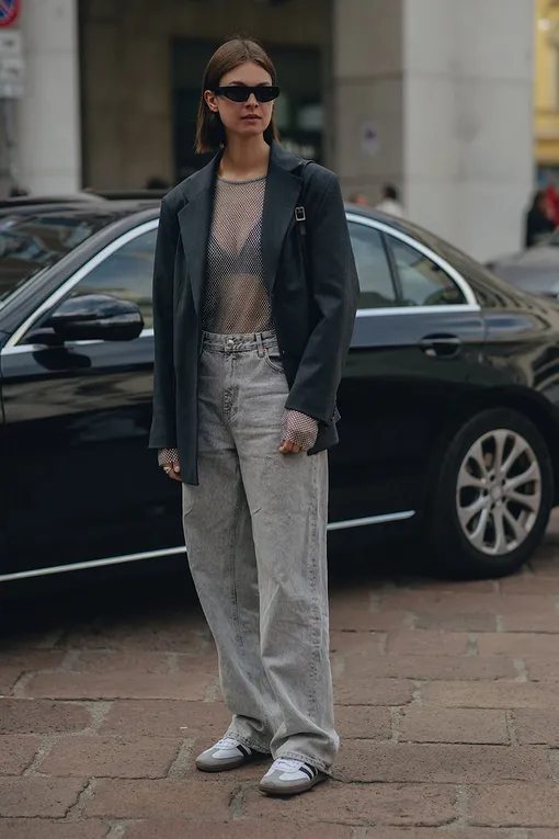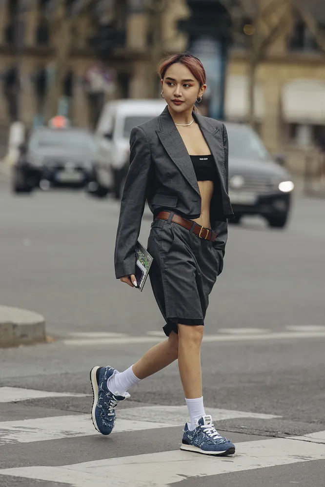 Ну и есть третий вариант — чуть более сложный в исполнении, но при этом гораздо более эффектный. Здесь вам придется балансировать между классикой и спортом, сочетая в одном луке сразу по несколько вещей из обеих стилистике. Например, юбка карандаш и жакет прямого кроя в комбинации с майкой-алкоголичкой и массивными кроссовками. Или костюм с пиджаком и шортами-бермудами в сочетании со спортивным бра, кроссовками и высокими носками. Ну или более простое и привычное комбо — пиджак, рубашка, потертые джинсы и кроссовки. Одним словом, вариантов масса, и собрать стильный лук с пиджаком и кроссовками можно, даже не прикладывая большого количества усилий.