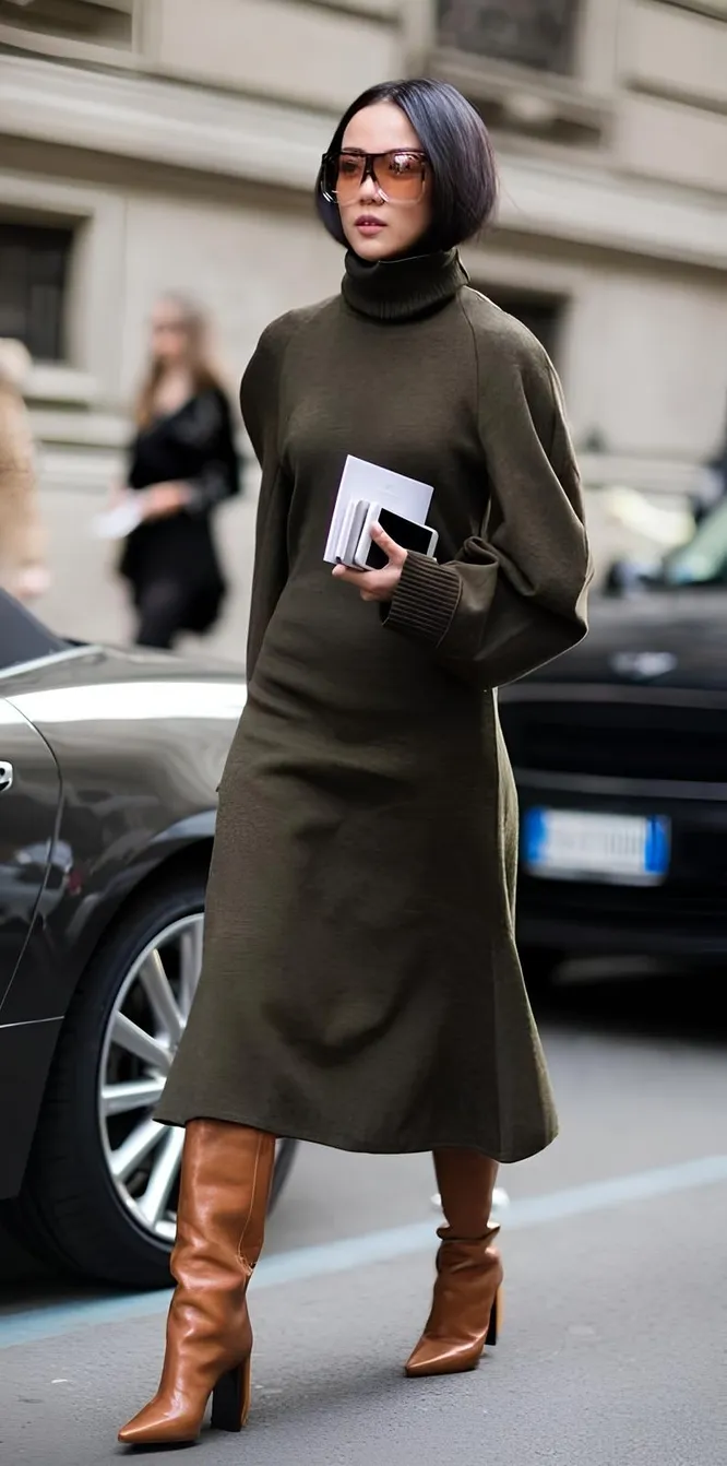 Как стилизовать платье-свитер этой осенью