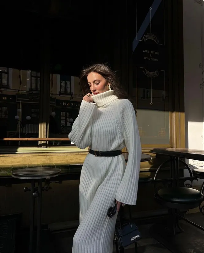 Для любительниц платьев холодная погода не является причиной отказываться от женственных и элегантных образов. Впрочем, даже самые ярые поклонницы этого элемента гардероба согласятся с тем, что между платьями для летнего и осенне-зимнего сезона есть некоторые различия. Именно поэтому поиск качественного и модного предмета может вызвать некоторые трудности. Мы присматриваемся к сезонным трендам, учитываем состав изделия, анализируем собственный стиль и выбираем варианты, которые актуальны именно для нас. Отличным решением на осенне-зимний период станет платье-свитер. На прогулку, в офис или свидание — оно станет надежным спутником при формировании аутфита независимо от повода и места. Но как же его носить, чтобы выглядеть стильно? Рассказываем далее.