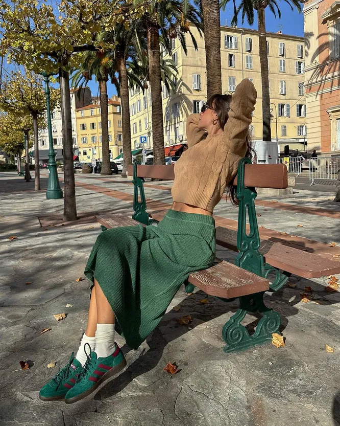 Не стоит бояться носить несколько трикотажных вещей вместе. Во-первых, это тепло и уютно, что является одним из главных критериев в холодное время года. Во-вторых, это действительно модно: целые трикотажные комплекты можно увидеть в большинстве осенне-зимних коллекций. Так что смело носите бежевый свитер с трикотажное юбкой в тон или контрастной. Дополнить наряд можно ботинками на массивной подошве или котильонами