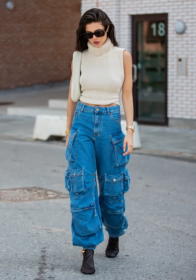 Из 2000-х к нам вернулся еще один тренд — брюки в стиле милитари, будь то классические карго или модель с камуфляжным принтом. Идеальную вещь в этом необычном стиле можно найти у Bottega Veneta. В новой коллекции бренда есть идеальные карго, которые подойдут практически ко всему. Правда, подобное решение больше подходит для сентября, а в октябре стоит присмотреться к более теплым моделям. Например, мягким вельветовым брюкам, искать которые лучше всего у Etro и Acne Studios.