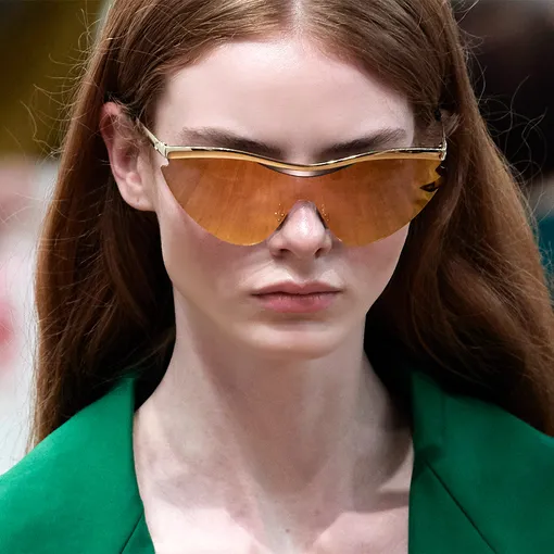 Rick Owens, Philosophy di Lorenzo Serafini и Tod's возвращают некогда модные зеркальные очки. Если пара таких осталась у вас еще где-то с середины 2010-х — самое время снова их достать. Да, конечно, такой аксессуар менее универсален, чем классика Saint Laurent, но если правильно его стилизовать — получите самый модный образ сезона. А вот Sportmax пошли по противоположному пути и сделали огромные очки прозрачными — и стекла, и оправу. Возможно, в яркий солнечный день в таких очках будет менее комфортно, чем в полностью черных или зеркальных, но для пасмурных дней приобрести их однозначно стоит.
