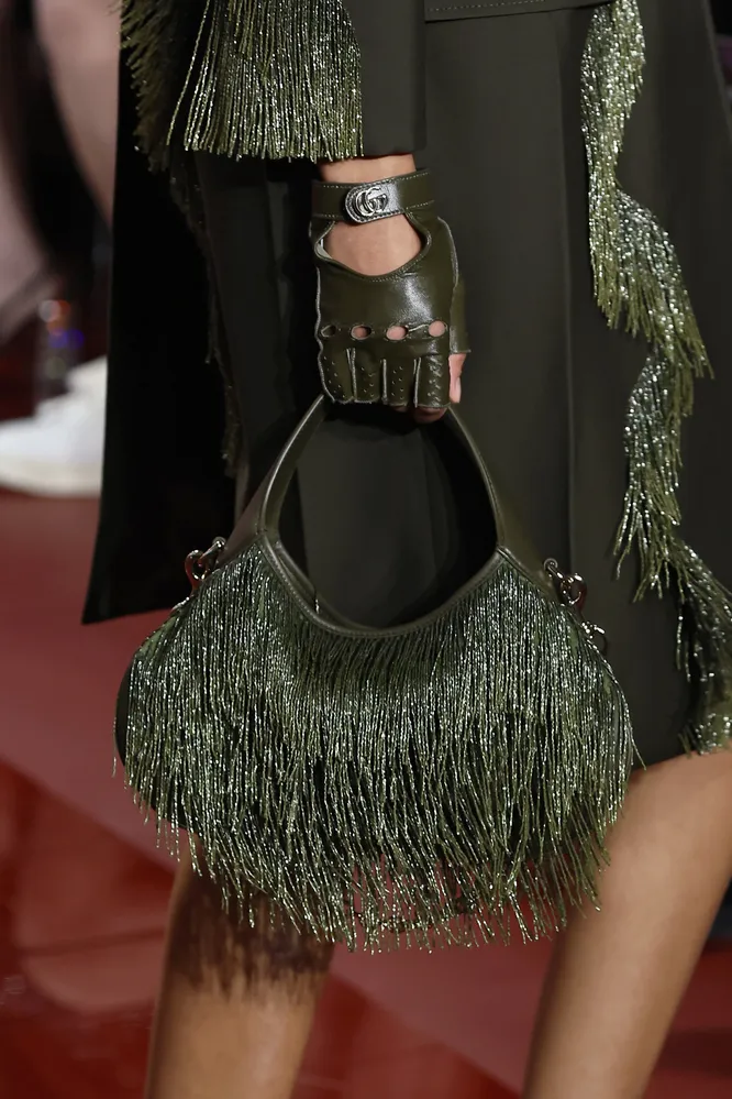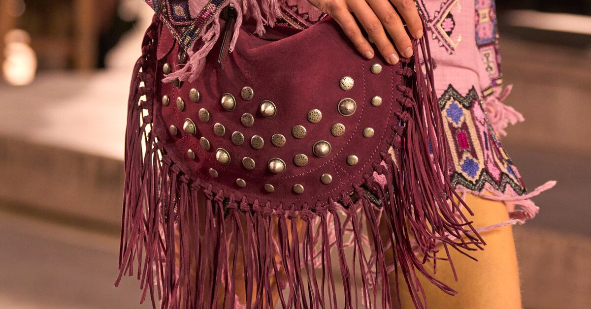Еще один ключевой аксессуар в стиле «бохо» — сумка с бахромой. На подиумах можно найти самые разные модели на любой вкус: от привычных опций из кожи или замши до вариантов из текстиля или джута. Еще сумка может быть любой формы. Но наиболее популярные варианты сейчас — сумки-полумесяцы, как на показе Isabel Marant, хобо и большие вместительные шопперы. Что касается самой бахромы, то она может быть густой и длинной или же короткой и редкой, — все зависит только от ваших предпочтений. Но лучше всего, чтобы декор был такого же цвета, что и сумка. Тогда аксессуар точно будет смотреться актуально.