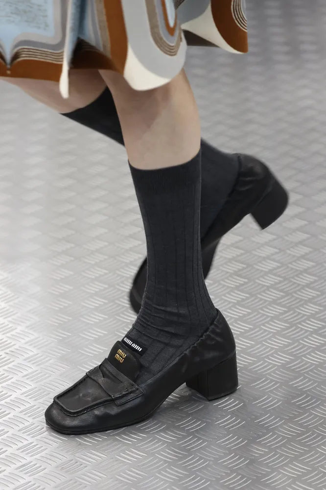 Еще один неожиданный гибрид этого сезона — лоферы-сапоги. Кожаный чулок, который поднимается по ноге — неожиданная часть базовой пары. Чтобы интегрировать в капсульный гардероб такую сложную обувь, не обязательно искать ее в магазинах — достаточно приобрести гетры из кожи в тон.