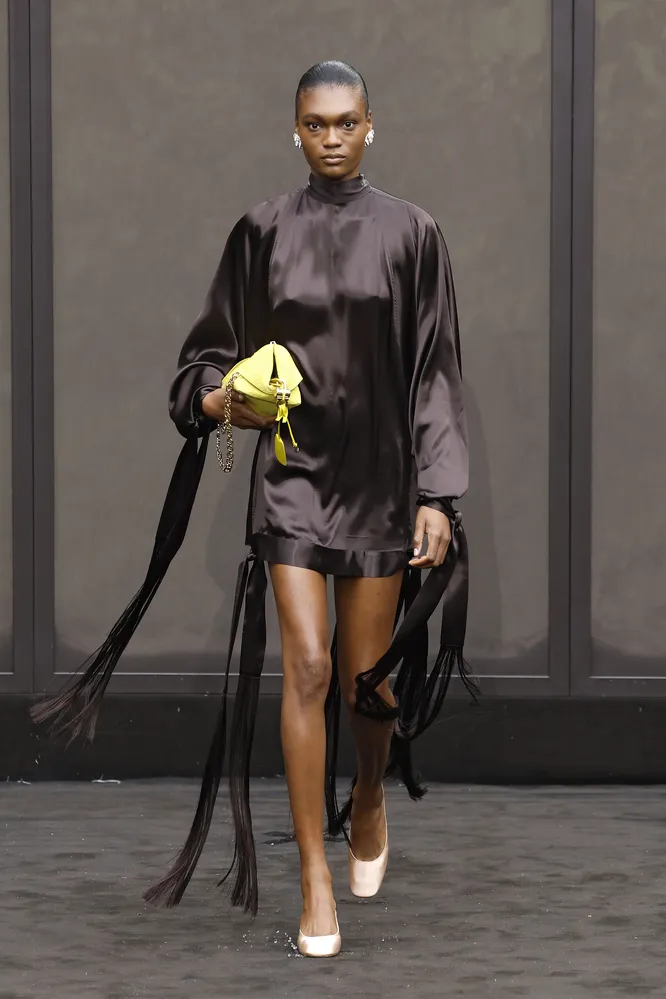 На роль самой комфортной одежды сезона весна-лето 2026 дизайнеры выбрали платья из приятных на ощупь материалов — например, как у Stella McCartney или Bottega Veneta. Эта пушистая фактура (которая напоминает бахрому, но таковой не является) может стать лучшим антистрессом во время напряженного рабочего дня.