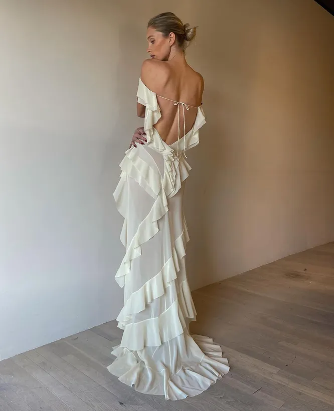 Однотонное платье на бретельках — это всегда хороший выбор, но рюши из полупрозрачной ткани могут сделать такую модель еще актуальнее. Невесомый декор по всей длине наряда выглядит стильно и женственно. Образ предлагаем дополнить крупными металлическими украшениями или, наоборот, оставить лишь небольшой медальон и серьги-гвоздики. А в качестве обуви можно выбрать светлые слингбэки или серебряные босоножки на высоком каблуке. Вариантов стилизации много — все зависит от вас.