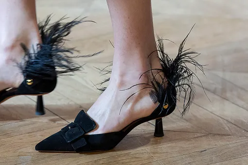Гленн Мартенс умело транслирует торжественную моду, используя при этом главные культурные коды современности. Джинсы и юбки с «декольте» из новой коллекции Y/Project (ожидаемо произвели фурор) дизайнер предлагает носить с лодочками на миниатюрном каблуке. Наиболее интересные — из темно-синего плюша, лакированной кожи и совсем сложносочиненные модели с декором в виде жемчужной нити и плоской цепи. Энтони Ваккарелло из Saint Laurent провозгласил главными в осенних гардеробах лакированные сапоги-чулки. Ничуть не отстают и Balmain и Isabel Marant: ботфорты также сверкают лаком, но обладают гораздо более объемной формой. Ну а самые соблазнительные ботфорты, пожалуй, в новой коллекции Elie Saab — из гладкой матовой кожи. Не обошлось, конечно, и без перьев, вычурной текстуры и вызывающе-яркого змеиного принта. В такой обуви готовьтесь проводить все вечеринки будущей осени.