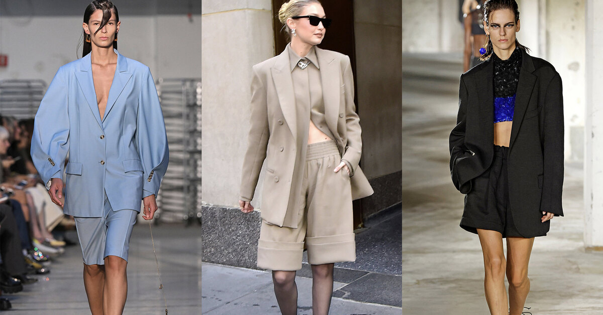 Крой костюма с шортами может быть разным. Если хотите носить его годами, чтобы он точно не потерял актуальности — выбирайте классику: объемный жакет с широкими плечами и шорты-бермуды длиной чуть выше колена. Такая модель будет хорошо смотреться на любой фигуре и точно не выйдет из моды. Впрочем, на подиумах в этом сезоне мы увидели и другие варианты: с короткими и очень короткими шортами и приталенными жакетами длиной до талии. Такой костюм, особенно в сочетании с обувью на каблуке, отлично подчеркнет фигуру и визуально удлинит ноги, правда и от потери актуальности через один или пару сезонов не застрахован.