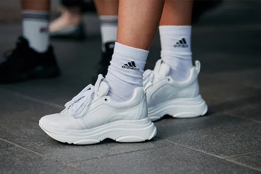 Одна из самых частых комбинаций массивных кроссовок — с длинными носками, которые могут доходить до колена. Сейчас, конечно, для большей части России такая пара окажется слишком холодной. Но в то же время длинные носки очень уютно смотрятся поверх колгот — плотных или, наоборот, классических капроновых. Главное — подбирать близкие по цвету модели. А вот массивные кроссовки служат так же верно и практично, как и осенние ботинки, — долго не промокают, не пропускают холод, их сложнее запачкать. Носите такие кроссовки с традиционными вязаными носками, со спортивными гольфами, с праздничными вариантами из люрекса и простыми моделями с разноцветными полосами.