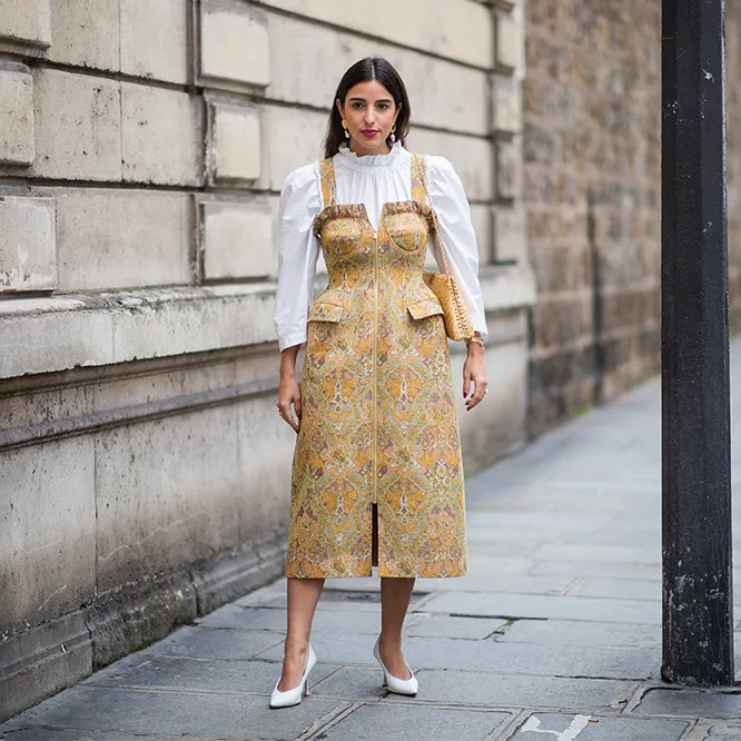 Модная униформа: этой осенью носите сарафаны с белой рубашкой