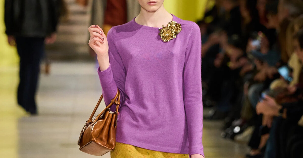 Одно из самых универсальных и известных правил стайлинга — не носить в образе больше трех цветов. Так вы точно не «перегрузите» аутфит лишними деталями. Но как оказалось, совсем необязательно придерживаться этого совета. Если вы чувствуете себя уверенно в создании сложных и интересных луков, можете попробовать сочетать и множество цветов сразу. Причем, это может быть комбо как базовых, так и более ярких оттенков. К примеру, Miu Miu предлагают сочетать вновь актуальный фиолетовый с желтым и разными оттенками коричневого. Несмотря на обилие цветов, лук получился очень гармоничным и стильным, так что обязательно берите его на заметку.