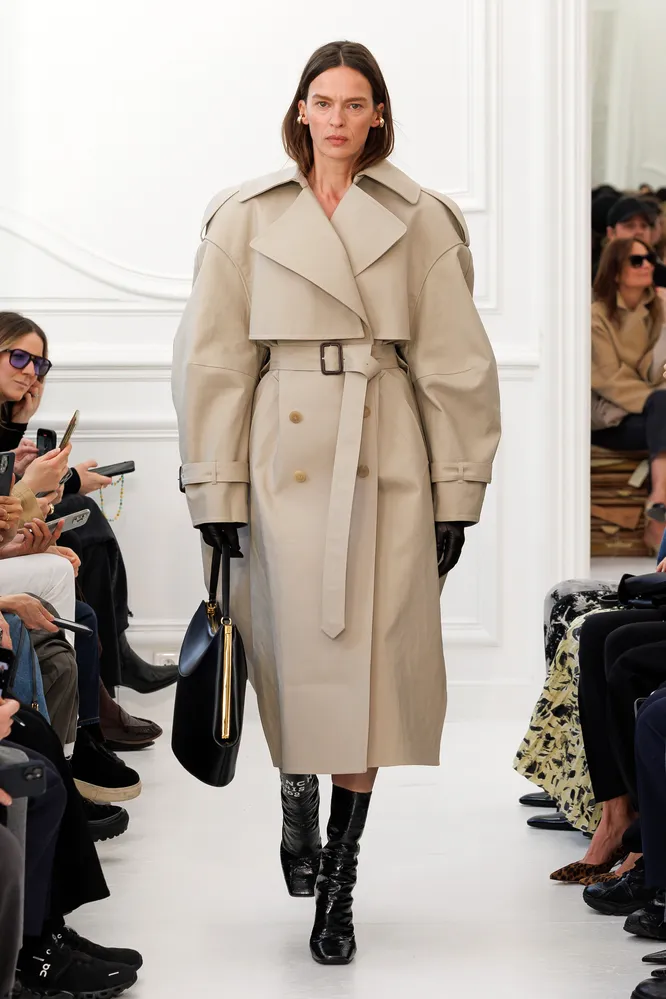Модный тренч с массивными плечами осень-2025