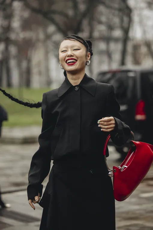 Да, красный все еще не сдает своих позиций. Только теперь дизайнеры и фэшн-инфлюенсеры предлагают носить его не в тотал-луке (как это было в том году), а в качестве контрастного акцента. В западных соцсетях такой модным прием получил название pop of red. Проще говоря, выбирайте одежду базовых цветов и добавляйте к ней «нотку красного». Это может быть все что угодно: яркий свитер, брюки, сумка, колготки или даже обувь.