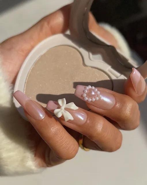 TikTok стоит любить хотя бы за то, что на его просторах параллельно может развиваться большое количество трендов, среди которых каждый найдет себе что-то по вкусу. Так параллельно с «уэнсдейкором» (да, у героини нашумевшего сериала Тима Бертона уже появился собственный «кор») на просторах соцсети появился тренд на «кокетливый» маникюр. Хэштеги #coquetteaesthetic и #coquettenails суммарно собрали более 2 миллиардов(!) просмотров и эта цифра только растет. Зумеры, которые все же остаются основной аудиторией тиктока, характеризуют «кокетливую» эстетику, как «женственность старой школы». Это нежные оттенки розового, бантики, сердечки и блестки. Использовать в маникюре все эти атрибуты кокетливой эстетики можно как угодно. Убежденным минималистам вовсе не обязательно переступать через себя и крепить на ногти объемный декор в виде бантов — достаточно перламутрового покрытия нежно-розового цвета