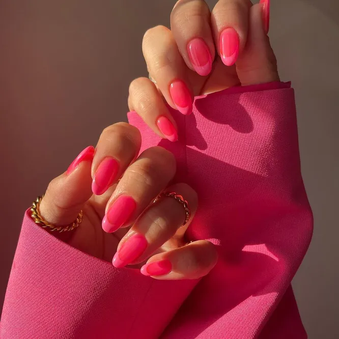 Уникальное качество французского маникюра в том, что он никогда не устаревает. Конечно, едва ли мы бы сейчас сделали классический френч с белыми «кончиками», ведь за последние несколько сезонов появилось множество более эффектных и трендовых вариаций этого дизайна. В 2023 году бал правит «иллюзорный» френч. На самом деле, это просто маникюр с двойным градиентом. Цвета могут быть любые: сначала градиент выполняется на основной части ногтя, а потом зеркальное отражается на его кончике. Звучит очень просто, но выглядит действительно завораживающе.