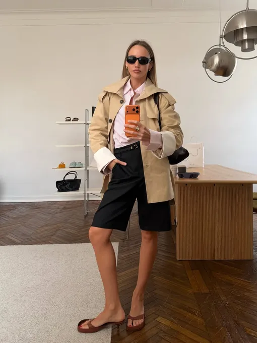 Почему на эту модель стоит обратить внимание? Во-первых, это альтернатива туфлям с открытым носком, которые уже кажутся предсказуемыми. Во-вторых, такая обувь удобнее, чем кажется на первый взгляд. Несмотря на «открытость», стопа фиксируется лучше, чем в классических босоножках. А значит, вы получаете и эстетику, и комфорт в одном решении. И да, даже в нейтральной гамме такие модели будут выглядеть акцентно. Как их носить? Стилизовать этот гибрид довольно легко. В повседневных образах он работает с прямыми джинсами, юбками миди, лаконичными платьями или шортами-бермудами. За счет необычной конструкции даже самый простой комплект будет выглядеть продуманно. То что нужно в эру поиска персонального стиля. В вечерних выходах пара раскрывается с платьями и классическими костюмами (жакет в этом случае можно надеть на голое тело). Она не перегружает образ, а добавляет ему нужную остроту. «Полуоткрытая» обувь на каблуке — тот случай, когда одна деталь меняет восприятие всего образа. Вы вроде бы выбираете знакомую форму, но она звучит иначе. И именно в этом ее стилистическая сила.