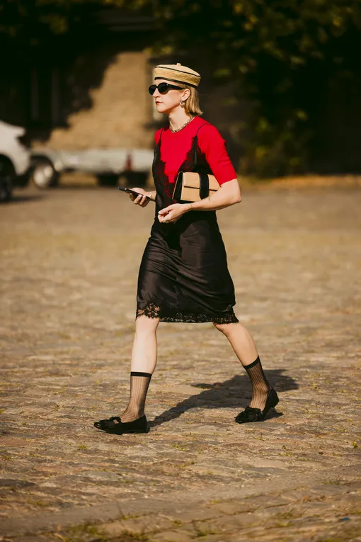 Создать контрастность можно также и с помощью обуви. Поэтому в прохладную сентябрьскую пору легко меняем все трендовые пары желейных босоножек, аквашузов, вьетнамок на каблуке и туфель в бохо-стиле на казаки или кожаные сапоги в жокейской эстетике. Таким образом вы составите максимально акцентный лук, в котором нижняя часть будет отвечать за тепло, а верхняя — за стиль. Если выбрать платье базового фасона, то дополнить лук получится любой верхней одеждой: от дерзкого кожаного плаща до уютного шерстяного пальто.