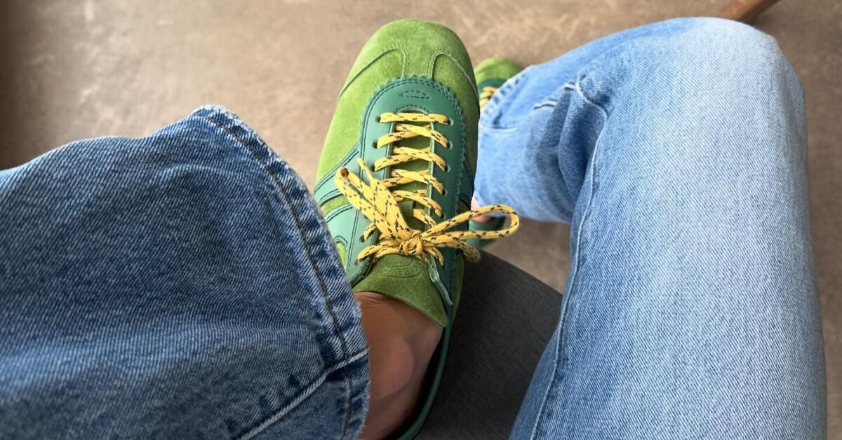 Зеленый тоже вошел в рейтинг самых актуальных цветов на осень-2024. Причем, буквально все его оттенки: от светлого мятного до насыщенно изумрудного. Так что смело выбирайте любые кроссовки. Кожаные или замшевые — в тренде оба варианта. А если не знаете, на какую модель обратить внимание, рекомендуем присмотреться к популярным опциям от Dries Van Noten или трендовым Nike Cortez. Еще можете сочетать их с розовой одеждой — такое комбо сейчас особенно актуально.