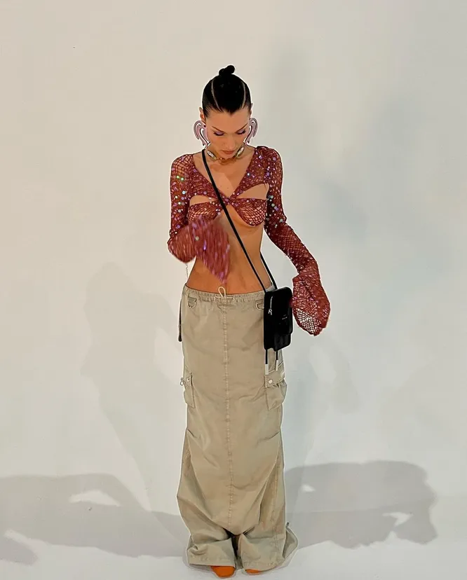 Правда, целомудренным назвать этот тренд не выйдет. Макси весны 2022 хоть и закрывают ноги, но в большинстве своем они с низкой посадкой (как в коллекции Coperni, например), или даже с имитацией торчащих стрингов (такую юбку ищите у Chanel). Да и носить макси-юбки дизайнеры предлагают не с закрытыми лонгсливами и скромными женственными блузами, а с кроп-топами, укороченными рубашками и даже сексуальными бра. Скромность длины макси получается весьма обманчивой.