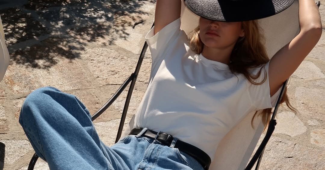 Более элегантное комбо — базовая футболка + юбка мини. Последняя может быть любого фасона. Романтичная с кружевом, трендовая «баллон» или просто модель прямого кроя — все зависит от ваших предпочтений. Советуем выбирать футболку оверсайз-кроя: такая «уравновесит» короткую длину юбки. Что касается обуви, то беспроигрышный вариант — удобные кеды: они подойдут для любого случая. Особенно популярны опции в небесно-голубом, изумрудном или красном цвете — они точно сделают ваш образ стильным. К ним можно подобрать кепку в тон. Так, вы внедрите в свой аутфит «зеркальный» метод — популярный стайлинг-трюк из TikTok. А в качестве аксессуара советуем присмотреться к трендовой сумке-мешочек или «таксе».