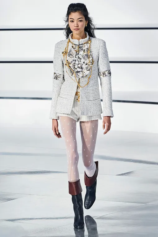 Вы наверняка знаете, что этой весной стиль преппи стал едва ли не самым любимым среди модниц. Помимо трикотажных жилеток и юбок в складку, один из главных атрибутов стиля – белые колготки точь-в-точь как из школьных времен. Поэтому обойтись без пары светлых чулок в этом сезоне просто невозможно. Тем более тренд на мини-юбки вовсю набирает обороты, а пара нарядных колготок идеально ее дополнит. Пожалуй, самый универсальный вариант – однотонные чулки, которые идеально впишутся в любой образ (например, от Marine Serre). Если вы готовы к эспериментам, смело забрасывайте в корзину покупок принтованные модели (как, к примеру, зебровые от Laneus). Миксуйте их с однотонными бермудами или твидовой микро-юбкой – от вашегоо образа будет невозможно оторваться.