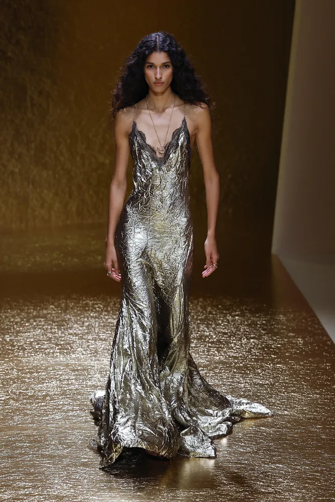 В 2026 году все, кто готов быть дивой, уже автоматически оседлали волну популярности. Все благодаря стилю гламура 80-х, который на последних Неделях моды «подвинул» бохо. Широкие массивные плечи, обилие золота, заметные украшения, пауэрсьюты и высокий ворот — вот главные элементы эстетики «гламоратти», которая побила все рекорды по поисковым запросам в Pinterest. Не стоит забывать и про другие атрибуты этого стиля — например, леопардовый принт и колорблок, который возродился из пепла этой осенью в Милане благодаря Prada, Gucci, Versace и Fendi.