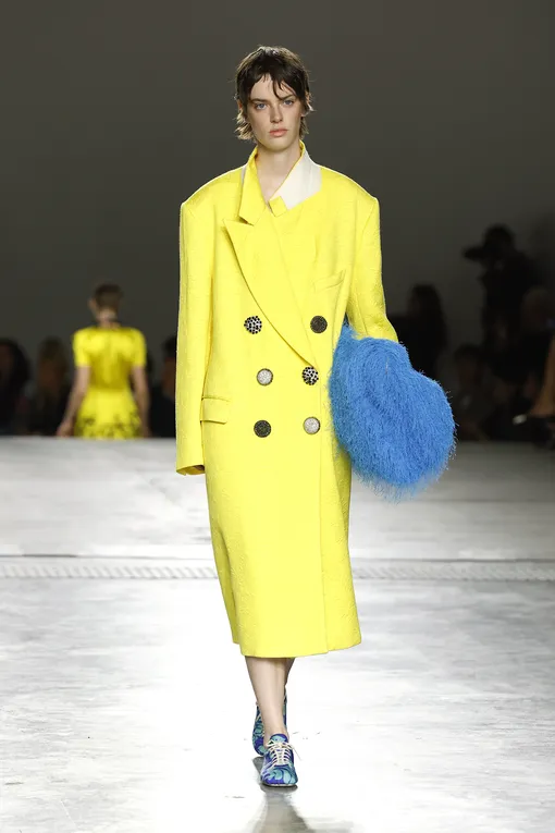 Желтый всегда нес в себе мощный символический заряд, ассоциируясь с весной и солнцем. Мы так ждем марта именно из-за света, которого катастрофически не хватает, и потому тянемся к его визуальному эквиваленту. Оттенков желтого множество, но актуальнее всего звучит солнечный — насыщенный и чистый. Его часто называют самым позитивным в спектре, и это редкий случай, когда модная риторика совпадает с ощущениями. Психологи говорят о способности желтого бодрить и заряжать энергией, и подиум эту теорию подтверждает. В коллекциях сезона он появляется в самых разных проявлениях. От тотал-луков до точечных акцентов. Dries Van Noten предлагает пальто и сочетает его с синими кроссовками и сумкой в тон. Ferragamo работает с желтым через платье, а Alaïa — через тренч. Если хочется более аккуратное решение, обратите внимание на куртки, как у Loewe и Prada, или топ, как у Tory Burch. Еще один простой ход — аксессуары (сумки или обувь). Даже в небольшом объеме желтый полностью меняет образ.