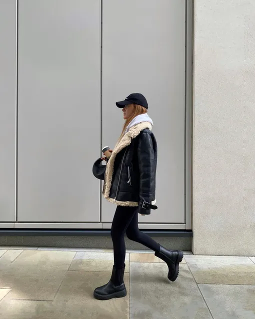 Леггинсы давно перестали быть исключительно тренировочной одеждой: сейчас модницы активно носят их, что называется, и в пир, и в мир. А утепленная модель запросто сможет заменить брюки в зимних образах. Особенно в комбо с трендовыми в этом сезоне жокейскими сапогами. Идеально дополнит наряд дубленка свободного кроя и теплая шапка в тон.