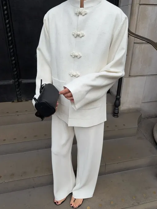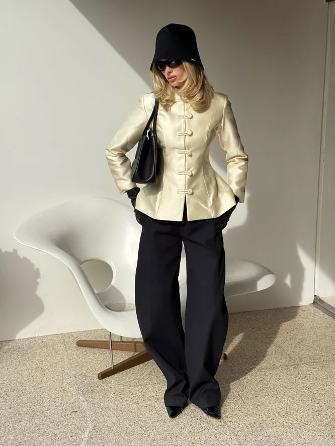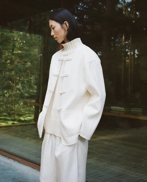 Среди целого набора вещей, которые мы привыкли характеризовать как вневременную базу вне трендов, всегда выделяются трендовые модели, призванные внести разнообразие в гардероб. В этот раз заветным желанием всех модниц стали модели в азиатском стиле. Их можно отличить благодаря нескольким деталям: во-первых, это необычный mandarin collar (с англ. «воротник-мандарин») — он выглядит как аккуратная «стойка» без лацканов, которая была вдохновлена традиционной китайской одеждой чиновников и знати в эпоху династии Минь. Во-вторых, такие жакеты вместо обычных пуговиц застегиваются на фроги (важно: ничего общего с лягушками) — так называются декоративные узловые застежки, которые также были характерны для азиатской моды средневековья. В остальном — это все та же универсальная модель, которую легко вписать в самые разные повседневные образы. Рассказываем, как это сделать.