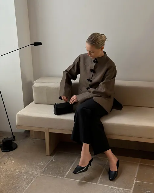Такие модели отличаются сдержанностью в подборе палитры. Обычно это нейтральные тона, среди которых — бежевый, насыщенный шоколадный, светло-серый, черный и молочный. А вот в контексте силуэтов есть на что посмотреть — традиционно жакет в азиатском стиле — укороченный и прямого кроя, однако сейчас, благодаря его популярности, дизайнеры представили и другие возможные переосмысления. Например, женственный приталенный вариант или более удлиненное прямое изделие, которое напоминает легкое пальто. Вы можете выбрать любую модель, которая хорошо интегрируется в ваш гардероб.
