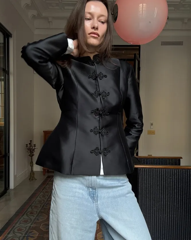 Почему именно жакеты в азиатском стиле стали главным пунктом в списках желаний совеременных девушек, которые следят за модой? Вот уже не первый сезон мы видим отказ от однотипных образов и стремление к индивидуальности. На пике трендов оказались стиль инди и эстетика максимализма. Безопасные и «безжизненные» вещи ушли на второй план, а вместо них модный Олимп возглавила одежда, которая может рассказать больше о своем владельце. Да и в целом азиатский стиль уже не первый сезон находится в центре внимания. Вспомним хотя бы стиль Japandi (от англ. Japan — «Япония» и scandi — «скандинавский»), соединивший в себе традиционные элементы двух противоположных эстетик. В числе самых желанных моделей оказались платья-кимоно и ципао, а теперь тренд продолжают жакеты в азиатском стиле.