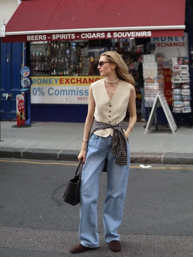 Брюки-алладины одназначно стали главным трендом лета 2025. Не было другой модели, которая была бы так популярна, как свободные шаровары, расширяющиеся от бедра и сужающиеся прямо к лодыжке. Так что их точно стоит надеть еще один раз перед тем, как убрать в шкаф до следующего лета. Брюки отлично будут сочетаться с самыми различными топами: бандо, асимметричным, трикотажным джемпером и самой простой базовой белой футболкой.