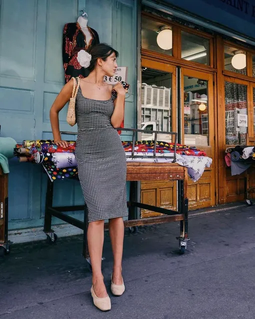 Чтобы точно не прогадать, ставку стоит делать на простые силуэты: минималистичное платье миди на бретельках, сидящее по фигуре, пожалуй, найдется в гардеробе у каждой. Если вам предстоит много ходить, но выглядеть при этом вы все еще хотите элегантно, дополните такое платье удобными балетками и отправляйтесь по делам.