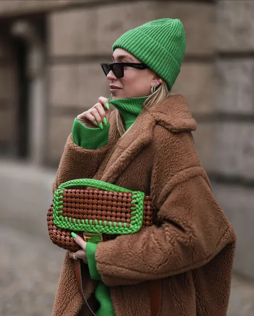 Классическое сочетание, которое будет актуально всегда — коричневый и бежевый. Только важно помнить о том, что у обоих этих цветов есть и теплые, и холодные оттенки, и в одном образе стоит сочетать либо одни, либо другие. Этой зимой советуем обратить особое внимание именно на теплые оттенки коричневого: в частности, коньячный и цвет молочного шоколада.