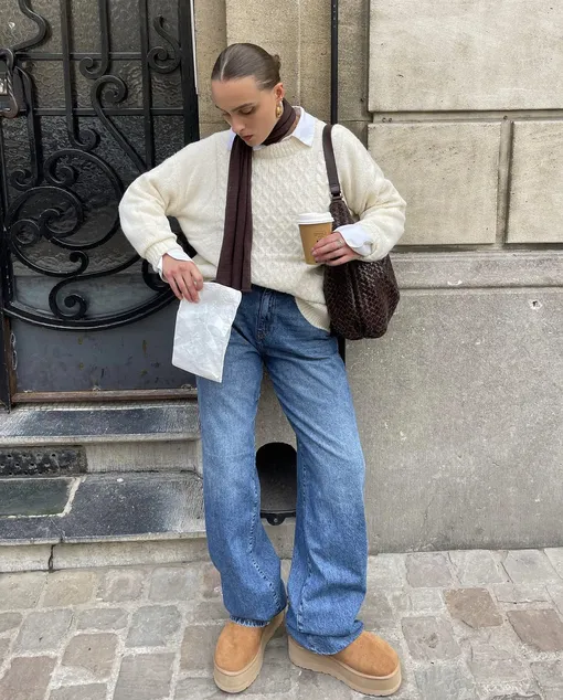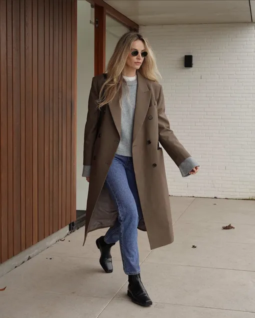 Еще одно абсолютно классическое сочетание, которое уже давно превратилось из тренда в классику и теперь никогда не покидает модную арену. Самый простой способ воплотить это цветовое комбо в образе — дополнить джинсы коричневым верхом. Впрочем, синий далеко не всегда равно деним, так что не бойтесь добавлять в образ и другие ткани и фактуры.