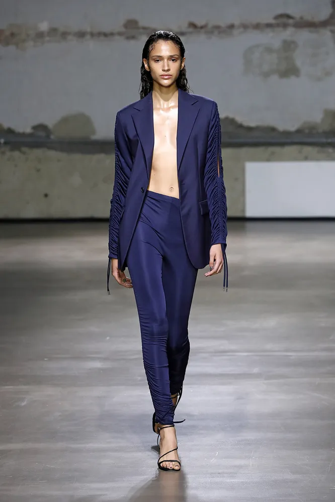Пожалуй, всем известно, что в повседневных образах мы носим леггинсы с закрытым или удлиненным верхом — с рубашками, пиджаками, блузами с пышными рукавами и кожаными косухами. Такой верх уравновешивает спортивный крой и в сумме получается гармоничный и вполне уместный для повседневной жизни образ. Обувь к леггинсам стоит подбирать по такому же принципу. Если сочетать с леггинсами кроссовки или кеды, дальше спортзала в таком виде лучше не ходить — образ получится на сто процентов тренировочным. А вот стоит добавить к лосинам изящную обувь на каблуке, они сразу приобретают совершенно другой вид. Если посмотреть на подиумы, чаще всего дизайнеры сочетают леггинсы с классическими остроносыми лодочками. Хотя вещи, на первый взгляд, совершенно разные, их сочетание получается на удивление гармоничным. Лодочки, впрочем, можно заменить на слингбэки на kitteh-heel, тоже остроносые. Получится чуть более комфортный, но не менее элегантный образ. Ну а когда на улице станет совсем тепло, на смену лодочкам и слингбэкам придут босоножки на каблуке — минималистичные, с тонкими ремешками. С ними в леггинсах можно будет отправиться на вечеринку, ужин с друзьями и даже свидание.