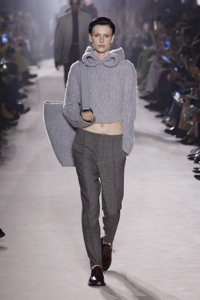 А если вы хотите сделать образ интереснее, то можете сапоги заменить на ботфорты. Такое сочетание гарантирует «вау»-эффект. А вдохновение для стилизации можно найти, например, у Khaite. Бренд предлагает остановиться на опциях с широким голенищем. Такие точно «сядут» на любые джинсы или брюки. Однако вы также можете сделать ставку на облегающую пару. Элегантнее всего будут выглядеть пары на каблуке: удобном широком, kitten-heel или шпильке. Но если такие вам не по вкусу, можете носить и комфортные опции на плоском ходу. А помимо привычных ботфортов с круглым мысом, советуем остановиться и на трендовых моделях с острым, квадратным или трапециевидным носом.
