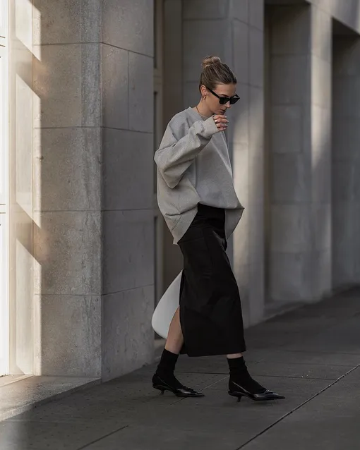 Еще одна отличная пара, о существовании которой мы забыли за период затяжной зимы. Мюли лучше выбирать с острыми носами, либо без каблука, либо с совсем маленьким — на комфортность обуви в носке он не повлияет. Такая пара станет отличной альтернативой лоферам для более теплой погоды и украсит десятки стильных образов с юбками и платьями макси.