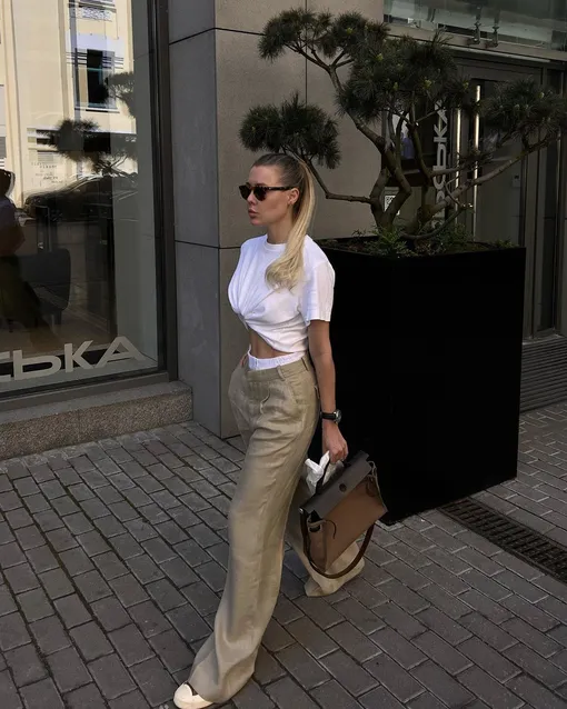 Конечно, в разговоре об актуальной обуви сезона весна-лето 2023 невозможно не упомянуть балетки. Они с льняными брюками буквально были созданы друг для друга. Такую комбинацию можно дополнить любым верхом — от майки-алкоголички до романтичной блузы.