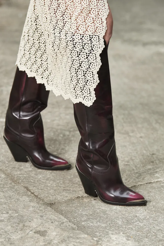 Не менее удобны и сапоги на массивной подошве. Толстый каблук делает обувь устойчивой, а это просто необходимо в дождливую и холодную погоду. В сочетании с заметной платформой и прямым голенищем он создает универсальный силуэт, который отлично дополнит любой аутфит. Наконец, в этом сезоне на подиум вернулись ботфорты. Этой осенью самую непростую для адаптации обувь стоит носить с твидовыми платьями длины мини или же плотными шерстяными юбками. Выбирайте широкие модели и делайте акцент на каблуке. А помимо классического черного присмотритесь ко всем оттенкам бежевого цвета. Особенно эффектно он выглядит в сочетании с мягкой замшей. В этом сезоне искать нюдовые сапоги на каблуке из самого элегантного материала стоит у Christian Louboutin и Gianvito Rossi.