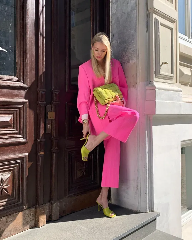 В своих весенне-летних коллекциях вариации на эту тему представили практически все ключевые бренды: зеленый — Valentino, цвета фуксии — Alexander McQueen и Versace, апельсиновый — Proenza Schouler, небесно-голубой — Stella McCartney. Дожидаться весны не видим смысла: яркие краски жизненно необходимы уже сейчас, а где их взять, когда за окном серо и пасмурно? Конечно же в собственном гардеробе! Так что покупку яркого костюма можно рассматривать не как очередную прихоть, а как инвестицию в собственное ментальное здоровье и хорошее настроение.