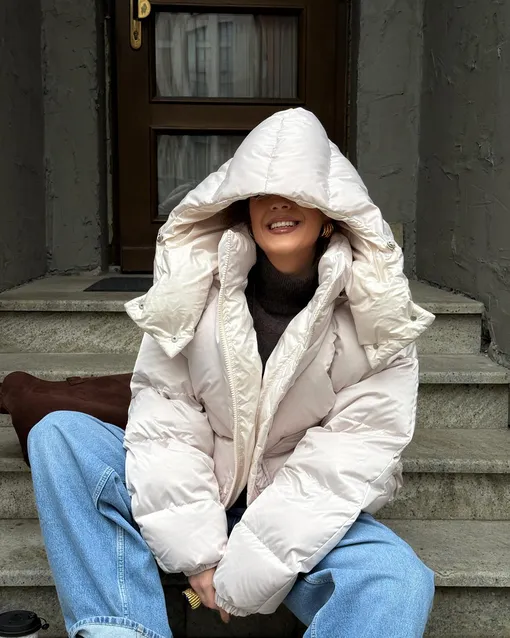 Продолжая рассматривать нейтральные цвета пуховиков, нельзя не отметить и серый. Его сложно назвать трендом: все-таки он никогда не выходит из моды. Однако инфлюенсеры нередко выбирают куртки именно в этом оттенке. А все потому что они легко вписываются в любой образ и при этом не выглядят столь банальными, как, например, черные пуховики. Оттенок серого может быть любым: от самого светлого до насыщенного графитового, — все зависит от ваших предпочтений.