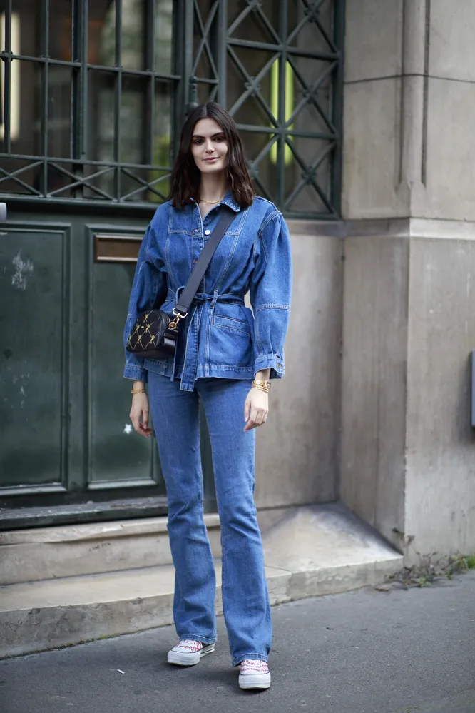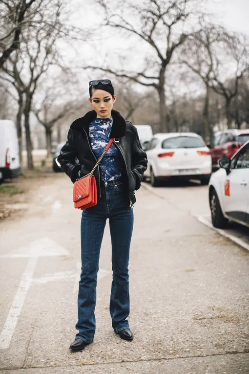 Любить крой bootcut стоит в первую очередь за то, что он потрясающе удлиняет ноги. Особенно эффективно это получается при высокой посадке (наглядный пример — в весенней коллекции Saint Laurent), но и с низкой выходит неплохо (обратите внимание на лук с показа Blumarine). Разумеется, эффект усилит обувь на высоких каблуках — но массивные ботинки или лоферы тоже окажутся очень кстати. Сочетать такие брюки из денима можно и с курткой или рубашкой из того же материала (особенно эффектно будет в заправку — так к длине ног визуально прибавятся еще желанные сантиметры), и с «мужским» жакетом, и с простыми базовыми рубашками и футболками. Иными словами, полная свобода творчества.