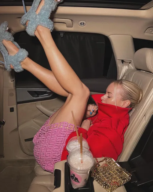 Если комбо в духе Ива Сен-Лорана все же кажется вам слишком кричащим, замените фуксию на пастельный розовый. Образ от этого менее эффектным не станет. Сочетайте алый брючный костюм с футболкой в цвете bubble gum pink (оттенок жевательной резинки) или с цветом пыльной розы. Несколько успокоить образ помогут аксессуары серого цвета — они добавят в цветовую гамму гармонии