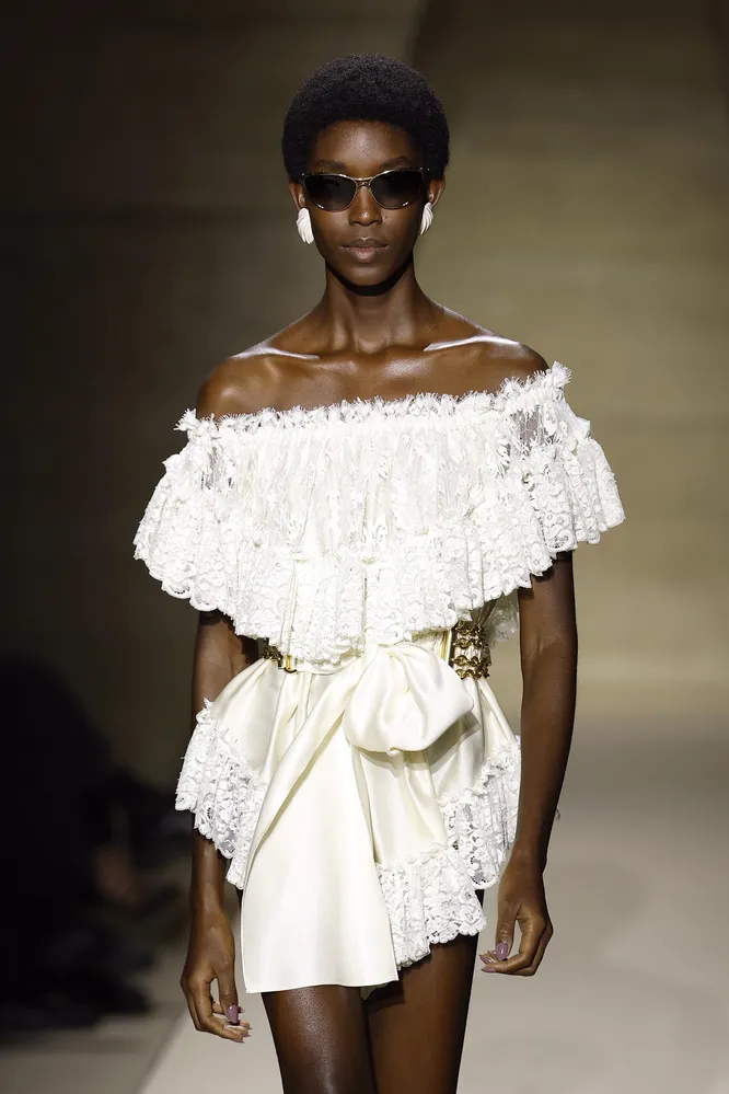 Каким образом этот необычный тренд вообще проник на подиумы? Всему виной всеобщая ностальгия по нулевым и возвращение неидеальной стилистики «инди-слиз», которую обожали фэшиониста в 2010-х. В то время еще никто не слышал про «тихую роскошь» с простыми чистыми образами и «бежевую моду». В тренде был стиль легкой несобранности и вещи с характером — например, кроссовки на танкетке, яркие узкие шарфы с черепами и блестящие леггинсы. Конечно, сейчас эти изделия вряд ли вернутся на модную арену, однако их бунтарский дух снова с нами. Особенно это заметно благодаря ренессансу гусарского жакета — он вполне может отвечать запросам пиратской эстетики.
