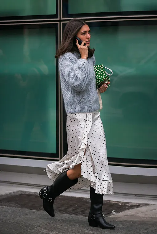 Сезон осень-зима — время контрастов, и чем они сильнее, тем интереснее получается лук. Не зря говорят: противоположности притягиваются. Судите сами: трикотаж крупной вязки плюс шелк, кожа плюс кружево, замша плюс шитье — классика! Ставший главным героем хроник стритстайла дуэт из безразмерного теплого свитера с летней шелковой юбкой — пример как раз такого порядка. «Они такие разные!» — скажете вы. «И все-таки они вместе!» — ответим мы. Дополните эту пару ковбойскими сапогами, миниатюрным тоутом и нежными серьгами и почувствуйте приближение весны в разгар январской вьюги.