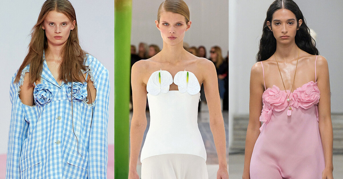 Топы и платья с объемными цветами на груди — самый соблазнительный тренд лета 2023